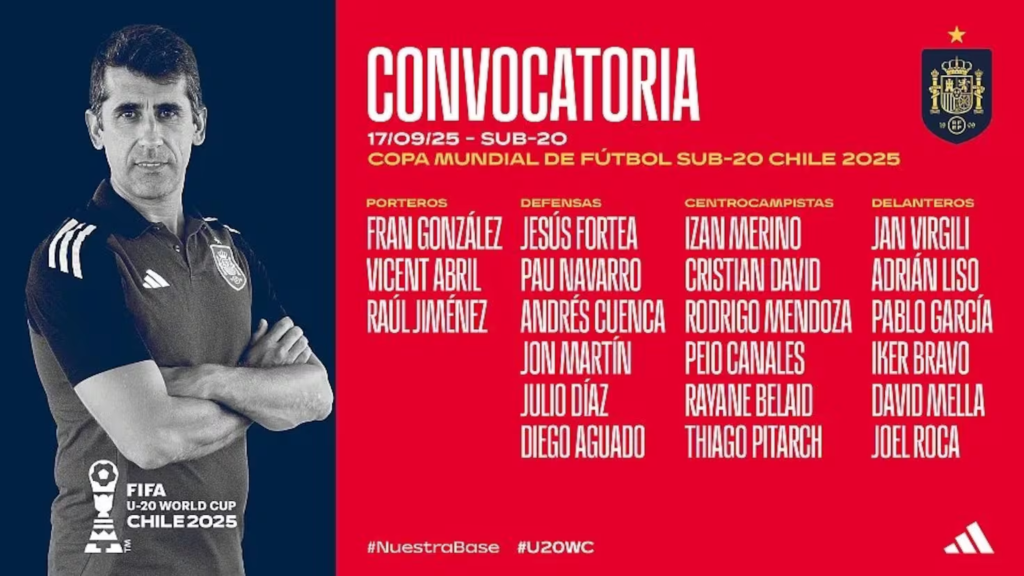 Paco Gallardo ha convocado a 21 futbolistas que tendrán la misión de defender la camiseta de España y buscar un título que se resiste desde hace más de dos décadas. La primera y única estrella Sub-20 llegó en Nigeria 1999, con una generación inolvidable de jugadores como Xavi o Casillas. Desde entonces, la Rojita ha tenido buenos momentos en categorías inferiores, pero llevaba 12 años sin clasificarse a un Mundial de esta edad.