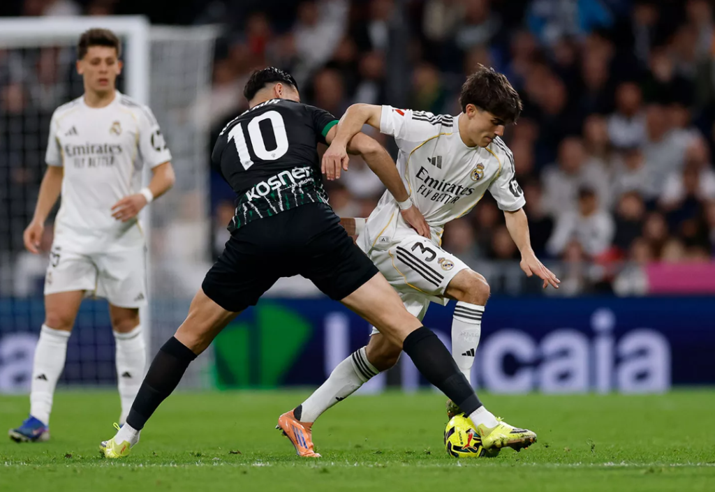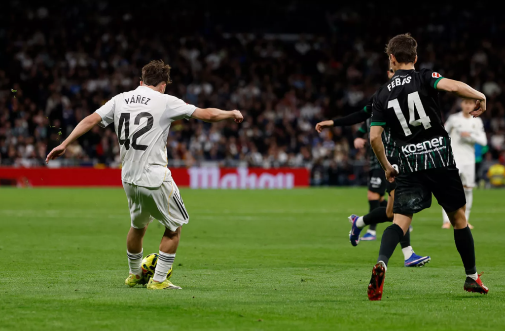 El partido quedó definido al descanso con el 2-0 de los locales pero el verdadero show empezó en el 60 con los cambios, en poco más de 5 minutos entraron 5 canteranos, Gonzalo García, Daniel Yáñez, Diego Aguado, Manuel Ángel y César Palacios, que se sumaban a un partido en el que ya estaban Dani Carvajal, Fran García y Thiago Pitarch, con Álvaro Arbeloa de entrenador para completar una demostración de poderío de La Fábrica. Y es que este caso va más allá de un entrenador confiando en unas promesas, esta generación de futbolistas fue la primera que dirigió Arbeloa cuando aterrizó en Valdebebas como entrenador del Infantil A, han crecido de la mano y su relación es casi paternofilial, han compartido muchísimo juntos, derrotas y victorias. Esta generación hizo triplete español en el Juvenil A en 2023.
