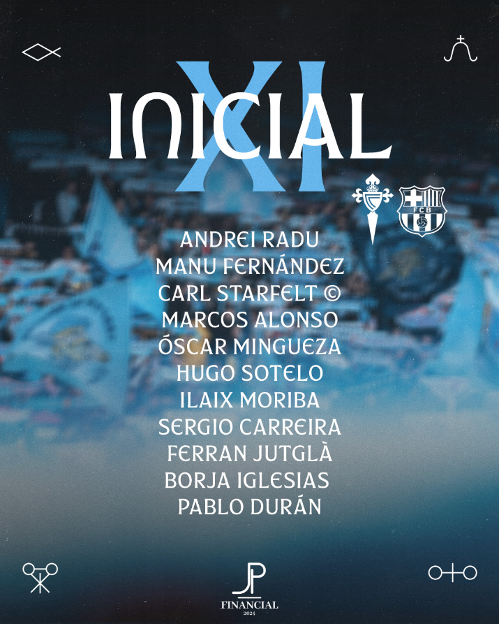Celta de Vigo: Radu, Marcos Alonso, Starfelt, Manu Fernández (Román, 78´), Carreira, Sotelo (El-Abdellaoui, 78´), Moriba, Mingueza ( J. Rodríguez 46´), Durán, Borja Iglesias (Iago Aspas, 70´), Jutglá (Bryan Zaragoza, 58´)