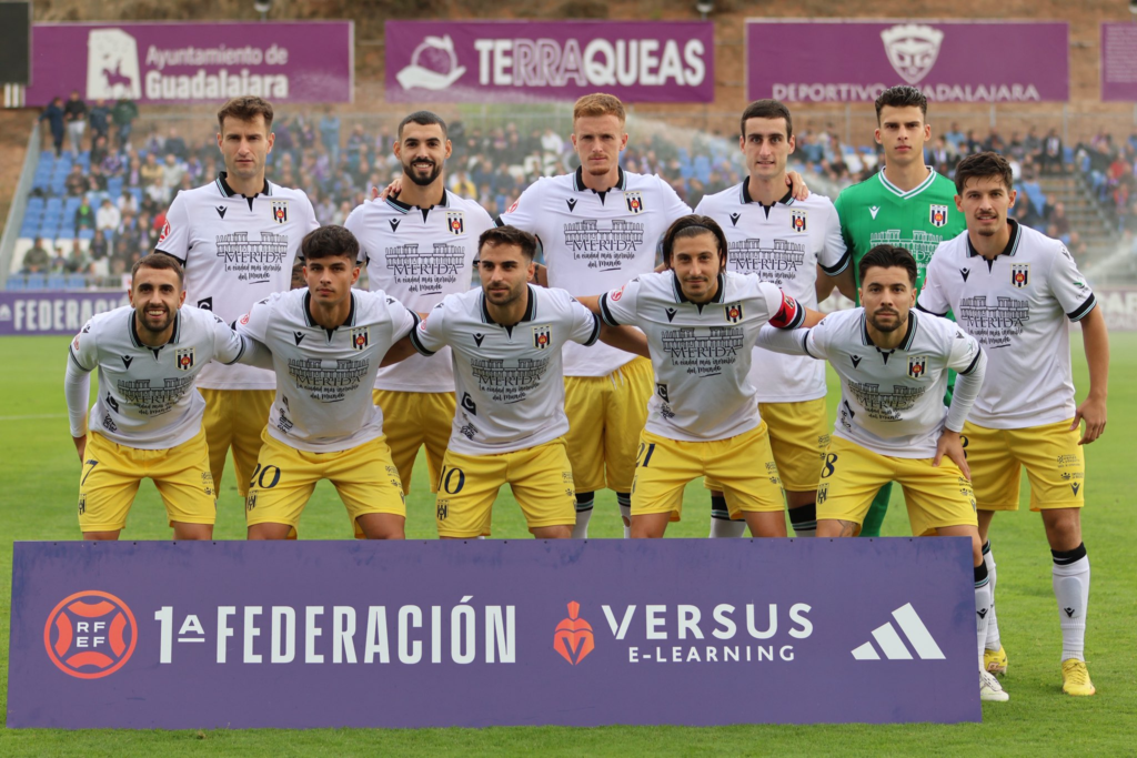 El conjunto extremeño parece que por fin están levantando cabeza después de su mal inicio de temporada y vienen de ganar su primer partido fuera de casa al Guadalajara, han conseguido 10 de los últimos 15 disputados y cómo la temporada pasada, cada vez que juegan en el Romano se hace de los equipos más fuertes de la categoría. Cuenta en sus filas con un delantero que esta siendo la sensación de la Primera RFEF Álvaro García y su portero el húngaro Adrián Csenterics, un autentico suplicio para los jugadores rivales. Recuperan a dos jugadores importantes dentro de la plantilla como son Miki Muñoz y Juan Artola pero se caen de la convocatoria Javi Lancho y Víctor Corral ambos por sanción.