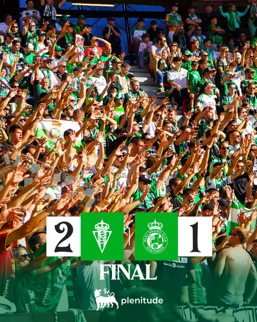 El gol no frenó a un Racing que siguió buscando meterse en el partido mediante un gol y al final lo consiguió en el minuto 75 cuando Jeremy, que había salido desde el banquillo, remató de cabeza un buen córner sacado por Andrés. El Racing buscó el empate pero el Sporting conseguía defenderse bien de las acometidas racinguistas.