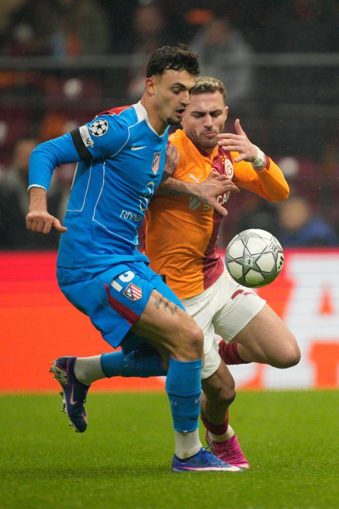 Julián tuvo la primera ocasión de peligro para el Atleti, el equipo visitante salió enchufado al partido, y Barrios ponía un pase atrás a Julián que mandaba la pelota desviada. Matteo Ruggeri metía un centro meticuloso que remataba Giuliano con la cabeza para poner el 0-1. El Galatasaray seguía intentándolo mediante los pases largos, saltándose así la presión colchonera y dificultando la labor de los zagueros rojiblancos. El Atleti conseguía el primer córner que despejaba con los puños Çakir. Sallai se metía hasta la línea de fondo y puso un centro raso que fue rematado sin intención por Marcos Llorente que metió el esférico dentro de su propia portería. Golpeaba Giuliano desde la derecha, el Atleti buscaba actuar de forma rápida tras el gol de los turcos. De nuevo la tuvo Julián, disparó desde la frontal buscando la escuadra del segundo palo pero el balón salió por encima de la portería del Galatasaray. Estaba en aprietos Çakir y volvía a despejar de puños, impecable el guardameta local. Se enzarzaron Osimhen y Pubill, ambos fueron sancionados con cartulina amarilla. Antes del descanso fue amonestado también Almada tras frenar un contragolpe. La contra ahora fue para el Atleti, Almada dio un pase a Sorloth y el noruego remataba de zurda directo a las manos del portero. Así se acababa la primera mitad del encuentro en Estambul. 1-1.