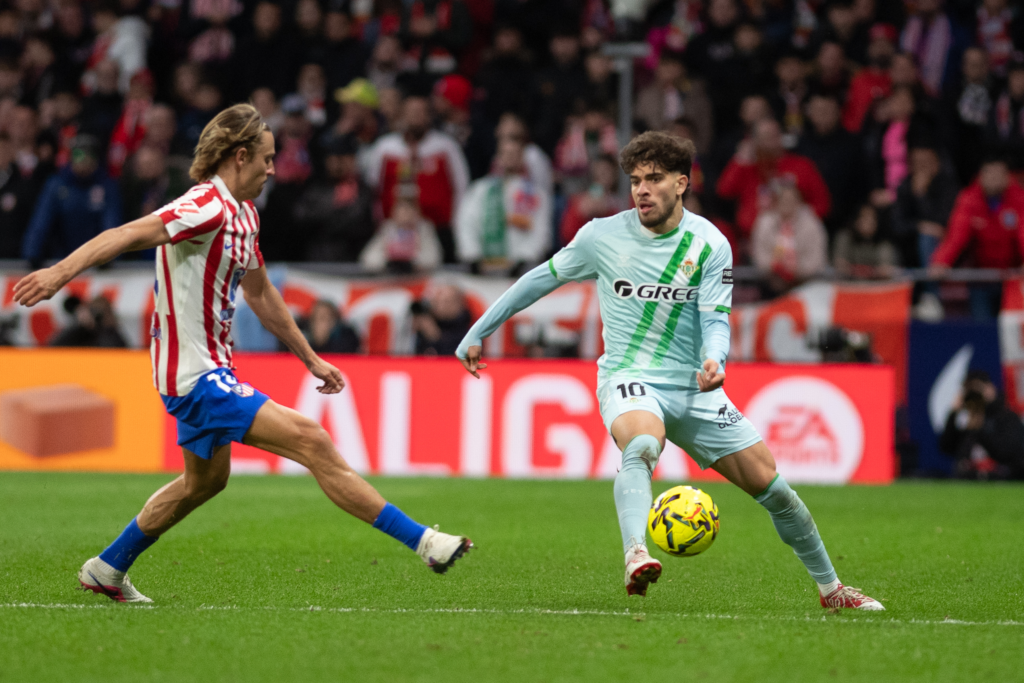 Era de prever que el equipo de Manuel Pellegrini preparase un partido distinto al de la Copa del Rey. El Betis es un equipo al que le gusta jugar con el balón y que siempre tiene en mente marcar antes que su rival. Este plan que se vio «en la basura» después de ver que un vendaval llamado Atlético de Madrid, liderado por Ademola Lookman, le pasase por encima. Un estilo de juego que hoy lo ha tenido que desechar y jugar más encerrado, en un bloque bajo muy discreto, donde su objetivo estaba en intentar buscar las máximas contras posibles. Ese ha sido el partido en los primeros 20 minutos: hemos visto un Atlético muy brillante al principio, pero ese brillo se ha ido apagando al ver que sus únicas ocasiones llegaban en las vueltas de intento de contragolpe que tenía el Betis (2 en esos minutos) y cuando había más espacios en las líneas del equipo franjiverde. A partir del cambio de partido, el equipo dirigido por Manuel Pellegrini ha empezado a coger más el balón y ha mantenido alguna que otra posesión larga. Así, en el intento de transición de un Atlético más encerrado, Antony se ha inventado un golazo para abrir el marcador cerca de la media hora de partido. Hasta ahí ha sido el primer tiempo, después del tanto del brasileño, han sido más listos y virtuosos que el Atlético para llevar igual el marcador al entretiempo.